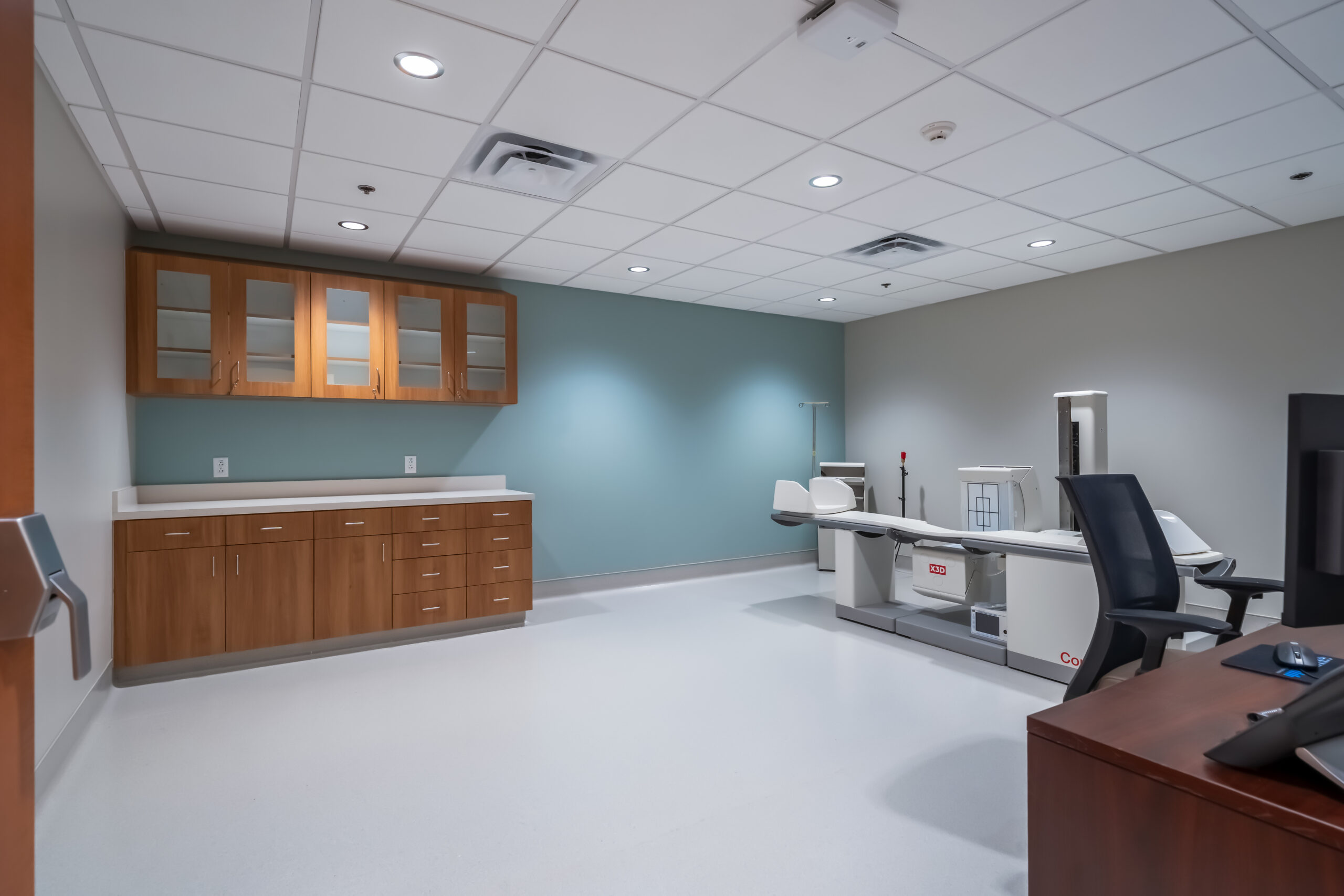 All construction was completed under strict infection control protocols, including ICRA dust barriers, negative air machines maintaining .02 pressure, and daily filter replacement to ensure a contaminant-free environment. Demolition and other loud activities were performed before patient hours to minimize disruption, and the project team coordinated closely with Siemens and city officials to meet all technical requirements and inspection schedules. Despite the accelerated timeline and complexity of the work, the renovation was completed on schedule, allowing the facility to immediately begin serving patients in a safe and modernized environment.